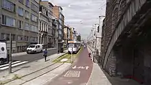 On this trajectory was, along with the opening of route 9, also built a new tram stop named Zurenborg, being located in the famous Art Nouveau Zurenborg neighborhood.[6] This stop is currently the only one in the entire Antwerp tram network making use of an island platform. Because trams in Antwerp do in general only have doors on the right side of the vehicle, the trams on route 9 are required to drive on the left side of the road when halting at the stop.