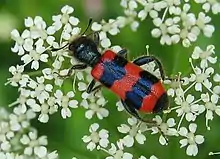 Trichodes apiarius is a beetle species of checkered beetles belonging to the family Cleridae, subfamily Clerinae.