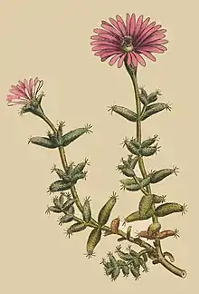 - ↑ H.E.K. Hartmann and I.M. Niesler. (2013). A new morphological study of the genus Trichodiadema (Aizoaceae) permits the description of a new subgenus, t. subg. Gemiclausa. Bradleya 31:58-75.