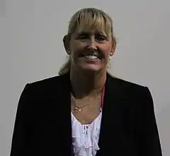 Trischa Zorn (born June 1, 1964, in Orange, California)[1] is an American Paralympic swimmer. Blind from birth, she competed in Paralympic swimming (S12, SB12, and SM12 disability categories).[1] She is the most successful athlete in the history of the Paralympic Games, having won 55 medals (41 gold, 9 silver, and 5 bronze),[2] and was inducted into the Paralympic Hall of Fame in 2012.[3] She took the Paralympic Oath for athletes at the 1996 Summer Paralympics in Atlanta.[4]