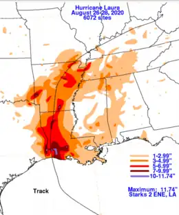 - ↑ Herzmann, Daryl. "IEM :: LSR from NWS LCH". mesonet.agron.iastate.edu. Archived from the original on September 5, 2020. Retrieved August 28, 2020.