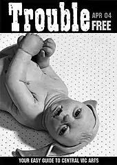 Trouble was started in Newstead, Australia, in 2004. The first issue featured a cover image of The Young Family (2002-3) by Patricia Piccinini, which had been recently acquired by the Bendigo Art Gallery. The first magazine consisted of 16 black and white pages, and the 1,000 copies that were printed soon disappeared from around 50 chosen outlets around Bendigo and Castlemaine in central Victoria. In 2011 a CAB audit[1] of the magazine's circulation confirmed a figure of 20,000 free copies of Trouble being distributed nationally in Australia each month. Trouble magazine is edited and designed by Steve Proposch, and continues to publish contemporary material of particular interest to artists, performers and arts consumers.