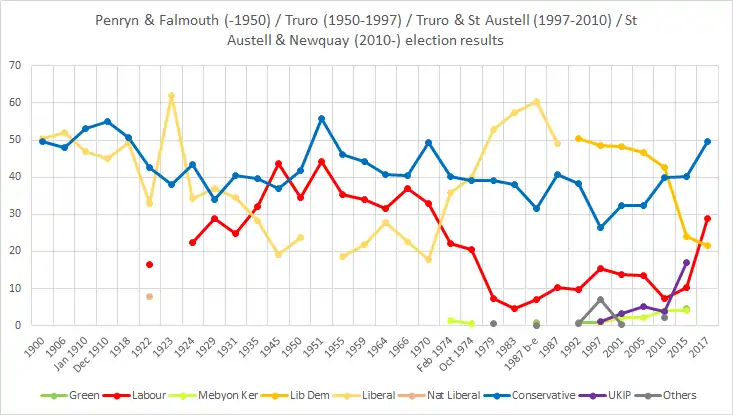 The constituency has existed in a number of different forms. The constituency of Truro, up until 1885 elected two members to parliament; this was reduced to one. In 1918 the constituency was abolished but it was recreated again in 1950.