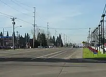 About 1918, a highway constructed of concrete was built between Beaverton and Hillsboro.[4] The highway replaced a dirt road maintained by the county that ran on the southern side of the railroad tracks.[4] This earlier road came from Portland along Farmington Road and veered north on what is now Kinnaman Road in Aloha until 209th Avenue in Reedville where it ran parallel to the rail tracks.[4] Farther west at Witch Hazel the early road then followed the modern Witch Hazel and River Roads into Hillsboro proper.[4] Hillsboro decided in March 1919 to have the new road travel along Baseline Street, two blocks south of Main Street where the road was to run.[5]