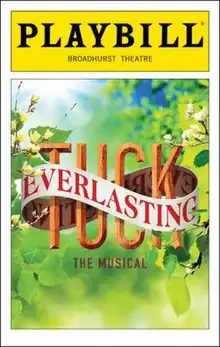 Tuck Everlasting is a musical based upon the American children's novel Tuck Everlasting by Natalie Babbitt. It features music by Chris Miller, lyrics by Nathan Tysen and a book by Claudia Shear and Tim Federle, with direction and choreography by Casey Nicholaw. The musical had its premiere at the Alliance Theater in Atlanta, Georgia, in 2015. It began Broadway previews on March 31, 2016; and opened on April 26, 2016, at the Broadhurst Theatre, in New York City.[1][2][3][4][5] The production closed on May 29, 2016, after 39 performances.[6]