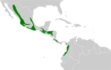 Although this species is not migratory, it is very rare vagrant to the United States, the first record being from Big Bend National Park, Texas in November 1991. It has also been observed in Arizona.