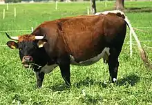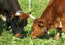 The Tux-Zillertal, German: Tux-Zillertaler, is an endangered Austrian breed of domestic cattle. It was created in 1982 when two similar Alpine breeds, the Tux and the Zillertal, were merged.[2]:317[1] The two names derive from those of the municipality of Tux in the Tuxertal, and of the neighbouring Zillertal, both in the Tirol region of Austria. The Tux-Zillertal may derive from the Swiss Hérens breed. Like the Hérens, it was long selected for the fighting ability of the cows, at the expense of productive characteristics.[3]:116