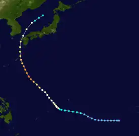 - 1 2 3 4 Japan Meteorological Agency. RSMC Best Track Data – 1990–1999 (.TXT) (Report). Retrieved May 30, 2018.