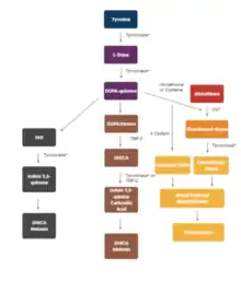 7. Hearing VJ, Ekel TM, Montague PM, Nicholson JM (Feb 1980). "Mammalin tyrosinase. Stoichiometry and measurement of reaction products". Biochimica et Biophysica Acta (BBA) - Enzymology. 611 (2): 251–68. doi:10.1016/0005-2744(80)90061-3. PMID 6766744.