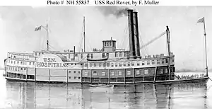 During the American Civil War, several African American women served as paid crew aboard the hospital ship Red Rover in the Mississippi River area in the position of nurse. The known names of four nurses are: Alice Kennedy, Sarah Kinno, Ellen Campbell and Betsy Young (Fowler). In addition volunteer nuns from the Catholic Sisters of the Holy Cross served aboard as nurses.[4]