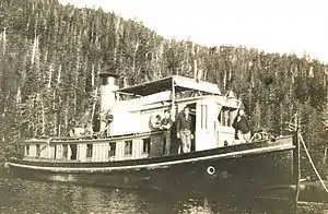 Cosmos in the Territory of Alaska alongside the much larger U.S. Coast and Geodetic Survey survey ship USC&GS Thomas R. Gedney (rear).