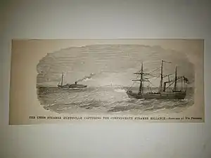 ![]() USS Huntsville chases the rebel steamer CSS Reliance. | |