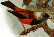 The ʻula-ʻai-hāwane (Ciridops anna) is an extinct species of small Hawaiian honeycreeper. The term ʻula-ʻai-hāwane is a Hawaiian phrase translating to "red [bird] that eats hāwane". It was only ever reported from the forested mountains of the Kohala, Hilo and Kona districts on the island of Hawaiʻi. Fossil remains reveal that it (and at least one closely related species, Ciridops tenax) also existed at one time on other Hawaiian islands. The species is named after Anna Dole, wife of Sanford B. Dole.[2]