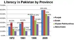In 1979, President Muhammad Zia-ul-Haq's policies announced "The National Education Policy, 1979" (NEP-79) which saw the harmonization of higher education in Pakistan with Islamic concepts and the national ideology.[9] President Zia's policies led to the fundamentalist ideas flaring in the higher education system in the country.[9] In 1992, Prime Minister Nawaz Sharif announced a "National Education Policy 1992" (NEP-92) to streamline the process of higher education.[9] This was followed by the Eighth Five-year Plans launched by Prime Minister Benazir Bhutto in 1993 which focused on primary education.[9]