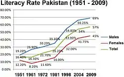 Many recommendations were directed and accepted by the government to established the University Grants Commission as a federal regulatory institution.[7] Efforts led by Prime Minister Huseyn Shaheed Suhrawardy led to the imposition of Soviet-oriented first five-year plans which explained the first official education policy in 1956.[8] The first plan was an attempt to make education development suitable for the socio-economic development in the country.[9]