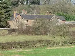 The hall originated as a large manor house for the Done family, who were the hereditary wardens of Delamere Forest, and is now a farmhouse. It has a medieval core but most of it dates from the early 17th century. It was partly refaced around 1700 and again in the early 18th century for Sir John Crewe. The hall is built in ashlar red sandstone. Part of the hall has an orange brick façade with red sandstone dressings. It has a Welsh slate roof and brick chimneys.[1] A barn, walls and gatepiers surrounding the hall are listed at Grade II.[2][3][4][5]
