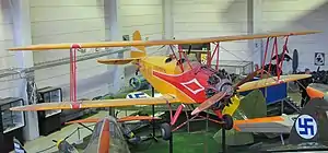 VL Viima, constructed by the State Aircraft Factory (Finnish: Valtion lentokonetehdas or VL) is a Finnish two-seat, biplane trainer used by the Finnish Air Force from the late 1930s to the early 1960s.[1] After military service, several were released into civil use.[2]
