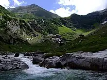 Lag da Laus (Laus lake) is located above the hamlet of Laus. South of Val Sumvitg is Piz Nadéls.