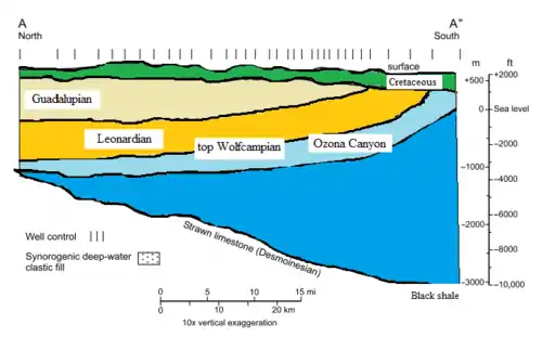 - ↑ Wright, Wayne. "Depositional History of the Desmoinesian Succession (Middle Pennsylvanian) in the Permian Basin" (PDF). Bureau of Economic Geology.