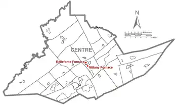 Location of the two hot blast coke furnaces, Bellefonte and Nittany, in Centre County, Pennsylvania.