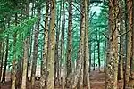 | Mediterranean cypress | All over the park. | Greece, Iran and Turkey | Evergreen tree up to 30 m tall with dark, thin and superficially wrinkled bark. Green leaves arranged in four opposite rows of two by two. | ![]() |