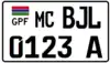 27x20 cm Black on yellow Gambian Flag as well as the text GPF on the top left corner of the license plate | |||