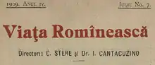 Viața Românească[lower-alpha 1] (Romanian: [ˈvjat͡sa romɨˈne̯askə], "The Romanian Life") is a monthly literary magazine published in Romania. Formerly the platform of the left-wing traditionalist trend known as poporanism, it is now one of the Writers' Union of Romania's main venues.