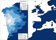 Vigo airport is located in the center of the Galicia–North Portugal Euroregion. This situation together with the fact of being a well communicated airport provides it the largest catchment area of Galician airports for all isochronous, being the second one in the euroregion after Porto Airport. [2][3] Besides the city of Vigo, the airport catchment area includes some touristic destinations like Pontevedra - Rías Baixas, North Portugal and Santiago de Compostela.