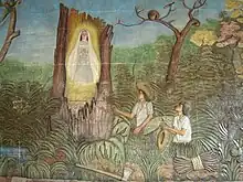 Mural showing the legend of the first apparition of the Virgin of Cotoca, created by Germán Miguel García Miranda