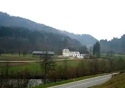 The Visoko estate in the Poljane Valley is part of this settlement. It comprises two large farms, first mentioned in documents as early as the 13th century. The Kalan farm was arranged by the writer and politician Ivan Tavčar into his manor. In his best-known work, The Visoko Chronicles, Tavčar describes events taking place on this estate in the 17th century, when the Kalan family were overlords of the entire valley. There is a bronze statue of the writer by the sculptor Jakob Savinšek close to the manor house. Tavčar is also buried at Visoko.