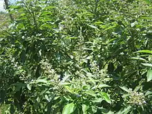 Vitex negundo, commonly known as the Chinese chaste tree,[2] five-leaved chaste tree, or horseshoe vitex, or nisinda is a large aromatic shrub with quadrangular, densely whitish, tomentose branchlets. It is widely used in folk medicine, particularly in South and Southeast Asia.