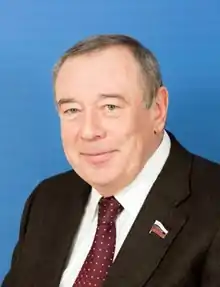 Vladimir Fyodorovich Chub (Russian: Владимир Фёдорович Чуб; born 24 July 1948) is a Russian politician who served as Governor of Rostov Oblast from 1991 until 2010. He was appointed governor in October 1991 and later that year won an election for the post by a large majority. He was re-elected in 1996 and 2001. He was appointed to the Federation Council in 1993.[1] Prior to his governorship, he was First Secretary of the CPSU committee of Proletarian district of Rostov.[2] He is a member of the United Russia party, formerly a member of NDR, and OKS.[3] His administration takes a strong stance against illegal political activity. Chub is of Ukrainian ancestry.
