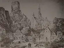 The hill castle was first recorded in 1122 as Urbs.[2] Following the death of Ulrich of Waischenfeld, the last in the Waischenfeld family line, in 1216 the castle and lordship of Waischenfeld went to Eberhard III of Greifenstein, who built a new fortress south of Waischenfeld, Schlüsselberg Castle. After the death of Conrad II of Schlüsselberg, the castle and town of Waischenfeld went in 1348 into the hands of the Bishopric of Bamberg.