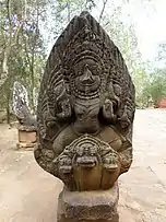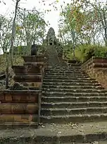 Wat Banan (Khmer: ភ្នំបាណន់) is the best-preserved of the Khmer temples in Battambang Province. The distinctive five towers of the temple are similar to the much larger and more famous temple of Angkor Wat. At the base of the mountain, is a step laterite staircase flanked by nagas.[1]