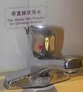The Chinese water quality standard for reuse corresponds to the Chinese surface water quality standard III (suitable for aquaculture and recreational purposes). It is apparently less strict than effluent standards in the US that correspond to the more stringent Chinese national surface water quality standard II.[14] Another source lists in detail standards for four types of non-potable municipal uses (toilet flushing, road cleaning/firefighting, car washing and construction) as well as landscaping, clearly showing that there is more than one standard for reclaimed water in Beijing. The microbiological standards for the various uses are the same, but the standards in terms of turbidity and dissolved solids vary depending on the intended use.[11] As of 2011, 100 residential communities used reclaimed water in toilet flushing.[15]