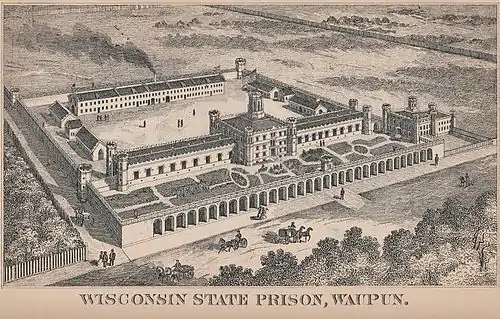 An illustration of the Waupun facility, from the 1885 edition of the Wisconsin Blue Book.