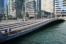 The Toronto Waterfront Wavedecks are a series of wooden structures constructed on the waterfront of Toronto, Ontario, Canada, as part of the revitalization of the central waterfront. Waterfront Toronto committed to constructing a series of unique wooden wavedecks along the water's edge for the 3.5 km area running from Bathurst Street to Parliament Street.[1] All the WaveDecks are accessible from the southside of Queens Quay.