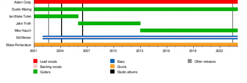 | Members | Adam Cody Blake Richardson Dustie Waring Sid Menon Wes Hauch |