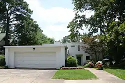 The Werner Knoop House is a historic house at 6 Ozark Point in Little Rock, Arkansas. Built in 1936–37, it is a rare example of Art Moderne residential architecture in the city. It is a two-story L-shaped structure, its exterior finished in brick with flush mortar joints and painted white, with asymmetrically arranged steel-frame windows in a variety of sizes and shapes. Its entrance is recessed in a rectangular opening framed by stone, immediately to the right of the projecting two-car garage. The house was built for Werner Knoop, owner of a local construction company, to a design by the local firm Brueggeman, Swaim & Allen.[2]