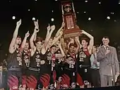 The 2018 off-season saw the Wildcats secure Bryce Cotton to a three-year deal,[85] while acquiring the services of Nick Kay and Mitch Norton from the Illawarra Hawks.[86] While losing championship trio Lucas Walker, Jarrod Kenny and Dexter Kernich-Drew to the Cairns Taipans,[87] former two-time championship Wildcat Tom Jervis returned to Perth after spending the previous two seasons with the Brisbane Bullets.[88] They also signed import Terrico White and elevated four-year development player Rhys Vague to the full-time roster.[89] The team travelled to the United States for two pre-season games against NBA teams Utah Jazz and Denver Nuggets.[90] where they were handed a 130–72 loss to the Jazz in their first match. This loss was cited by coach Trevor Gleeson as the catalyst to the season's success.[91] The Wildcats started the season with a 10–1 record despite Martin, Brandt, White and Cotton being out for various periods of time with injuries.[92][93] By mid-January however, the Wildcats had fallen to 12–9 after losing eight out of 10 games,[94] leading to increasing external pressure urging them to make changes to their roster and bring in a third import.[95] The organisation and coaches instead backed the playing group to return to form and enjoy success in the latter part of the season.[95] In response, the team bounced back with three straight wins over Melbourne, Adelaide and Sydney, seeing them move to 15–9 and atop the ladder by late January.[96] They won the next three as well, and despite a regular-season finale loss to Melbourne and being without Norton since 25 January with a calf injury,[97] the Wildcats finished as minor premiers with an 18–10 record.[98][99] They went on to defeat the Bullets 2–0 in the semi-finals to advance through to their 14th NBL Grand Final series,[100] where behind Grand Final MVP Terrico White, the Wildcats defeated Melbourne United 3–1 to claim their ninth NBL championship,[101][102][103] hoisting the trophy on the back of 11 wins from their final 13 games.[104] Having only secured the title interstate once before—in 1990—the Wildcats' win in Melbourne was only the fourth grand final road win for any NBL team since 2009.[105]