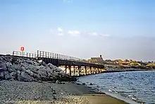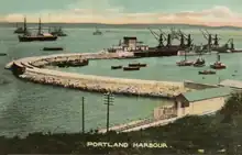 In the 1840s, it was desired to provide a harbour of refuge at Portland. There was no other suitable place between Portsmouth and Plymouth. On 11 May 1847, an enabling Act was passed; the Commissioners of Woods and Forests could acquire land necessary to build a breakwater.[23] Construction of the breakwater was a prodigious task involving very large quantities of stone and gravel, and it was not completed until 1872. Even then, much further defensive and marine work was continuing.[24]