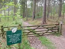 Whinfell Park was at the core of the forest. Its proximity to Inglewood Forest meant that it was mentioned in court documents relating to disputes between the two areas. The park contained two frequently mentioned landmark trees: the Harthorn Tree and the Three Brother Tree.[3] The Harthorn Tree had a hart's horn embedded in it. The Three Brother Tree was the sole survivor of three unusually large oaks called the Three Brethren. The site of the Harthorn Tree is marked on old maps. The name "Three Oaks" is used within the Center Parcs site. By 1779, the park had been divided into farms by enclosure.[1][4]
