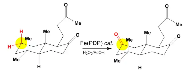 - ↑ Bigi, M.A.; Reed, S.A.; White, M.C (2012). "Directed Metal (Oxo) Aliphatic C–H Hydroxylations: Overriding Substrate Bias". J. Am. Chem. Soc. 134 (23): 9721–9726. doi:10.1021/ja301685r. PMID 22607637.