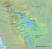 ![]() The course of the Whitewater River highlighted on a map of the Salton Sea drainage basin | |