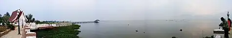 The 3rd class Buddhist royal temple Wat Si Khom Kham lies on the lake.[2] Locals often refer to it as Wat Phrachao Ton Luang after its large 16 metre high and 14 metre wide (at lap) Buddha, gilded between 1491 and 1524.[3] The current temple was completed in 1923.[4] Its most important day is Visakha Puja Day in the 8th lunar month when pilgrims arrive to pay their respects to Phrachao Ton Luang. The temple also contains intricate mural paintings in elaborate designs by artist Angkarn Kalayanapong.[3] Nearby on the bank of the lake is the Pho Khun Ngam Mueang Memorial and public park commemorating Phu Kam Yao, a former king of Phayao, some 700 years ago.[5] Adjacent to Wat Si Khom Kham is the Ho Watanatham Nithat Museum, an indigenous museum which relays the history and ancient traditions of the area, which numerous ancient artifacts.[5] There is also a two-storey Cultural Exhibition Hall near the Wat, showcasing the ancient culture of Phayao; notable exhibits include a Black Buddha statue and fossil of two embracing crabs, an exhibit which is known as "Wonder Love".[4][5] Wiang also contains Phayao Ram Hospital off National Road 1, Phayao Northern Lake Hotel, and Kwan Phayao Golf Course is located to the north-east.[2][4]