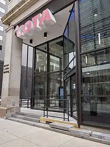 The Lhota Building was built in 1905.[2] It was associated with many of the city's leading businessmen, as its directors included Nicholas Schlee (president of the Schlee Brewing Company), W.H. Jones (president of the Jones Witter Company), and James Kilbourne (president of the Kilbourne and Jacobs Manufacturing Co.). Around 1919, the building also housed the home offices of the Ohio State Life Insurance Company. Around the 1930s, the retail shop Kibler Men's Clothing occupied the first floor, which was then occupied by Walker's Men's Store from the early 1950s into the mid-1980s. The building's upper floors had several small professional offices.[2] For a time, the building contained the headquarters of the Ohio Republican Party,[7] and the office of noted Columbus architect David Riebel.[8] The entire building was taken over by the URS Corporation in the late 20th century.[2] COTA began searching for a new headquarters as their McKinley Avenue offices reached capacity. The agency purchased the building in 2008,[3] and renovated it, giving it new floors, finishes, and workstations. Lighting, HVAC, and mechanical systems were also updated. COTA's ticket office and its operator sign-in station were also moved to the building, from their former location on Capitol Square at 60 E. Broad Street.[5] The building was named for Lhota, COTA's former CEO, in 2012.[3]