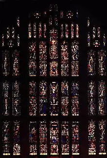 In 1910 Willet won the commission for the Great Sanctuary Window in the Cadet Chapel at the United States Military Academy in West Point, New York. That window, entitled Duty, Honor, Country is composed of seven lancets and measures 34 feet wide by 50 feet tall. At the time, the competition was recognized as one of the most memorable ever held in the United States. Designs submitted to the selection jury were displayed for several weeks at the Boston Museum of Fine Arts. Willet beat out Louis Comfort Tiffany and many other accomplished designers of the day.[3] Following its completion, the project for the design and fabrication of the Nave and North windows was awarded to the Willet studio. The commission, which spanned three generations of Willets over a period of sixty-six years, remains the longest continuing commission in American history.[8]