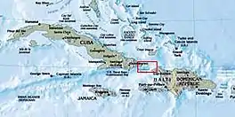 Windward Passage (French: Passage au Vent; Spanish: Paso de los Vientos) is a strait in the Caribbean Sea, between the islands of Cuba and Hispaniola. The strait specifically lies between the easternmost region of Cuba and the northwest of Haiti.[1] 80 km (50 mi) wide, the Windward Passage has a threshold depth of 1,700 m (5,600 ft).