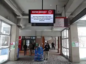 Winter storm warning at York University.