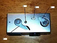 :1:Film advance and shutter lever :2:rewind crank :3:counter :3:reverse lock